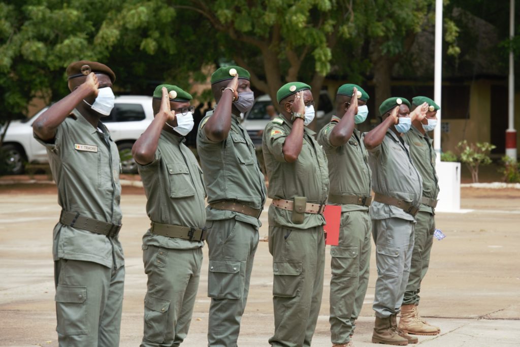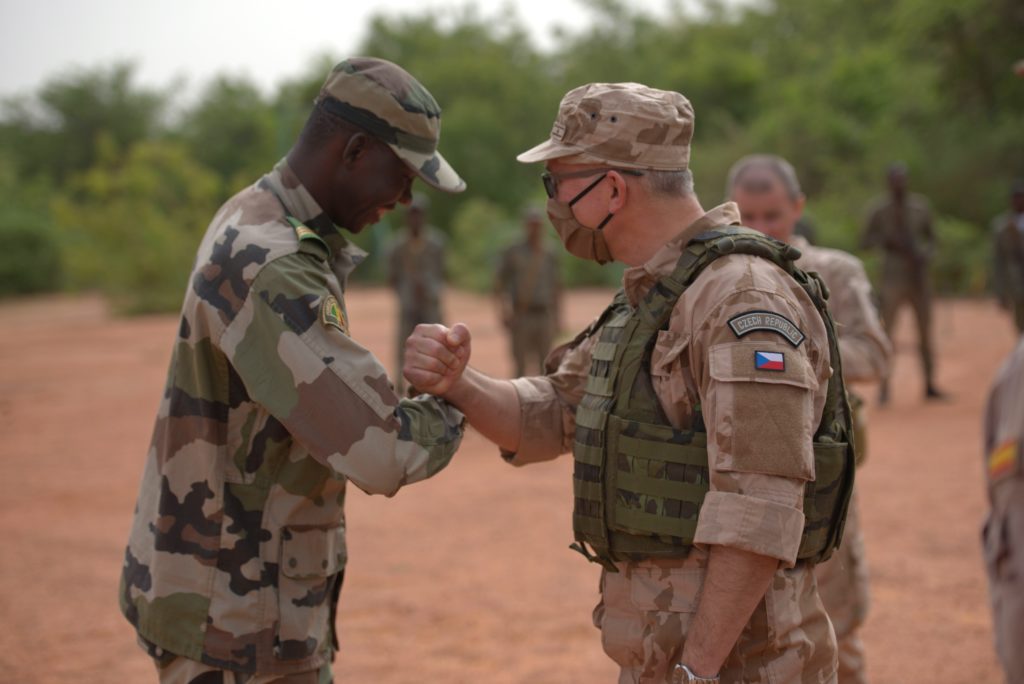The Change of Command between the outgoing Education and Training Task Force (ETTF) Commander, Colonel Jesus Campuzano Santa Teresa (Spain) and the incoming ETTF Commander, Colonel Martin Botik (Czech Republic) took place on Monday, 15 June 2020, at the Koulikoro Training Centre (KTC). The Change of Command was executed during a formal ceremony with the presence of the EUTM Mali Mission Force Commander (MF Cdr), Brigadier General František Ridzák, the EUTM Mali Deputy MF Cdr, Colonel Antonio Arauzo Martinez and the Commander of the Boubacar Sada Sy Training Centre, Colonel Traoré. All KTC personnel took part in the Ceremony.