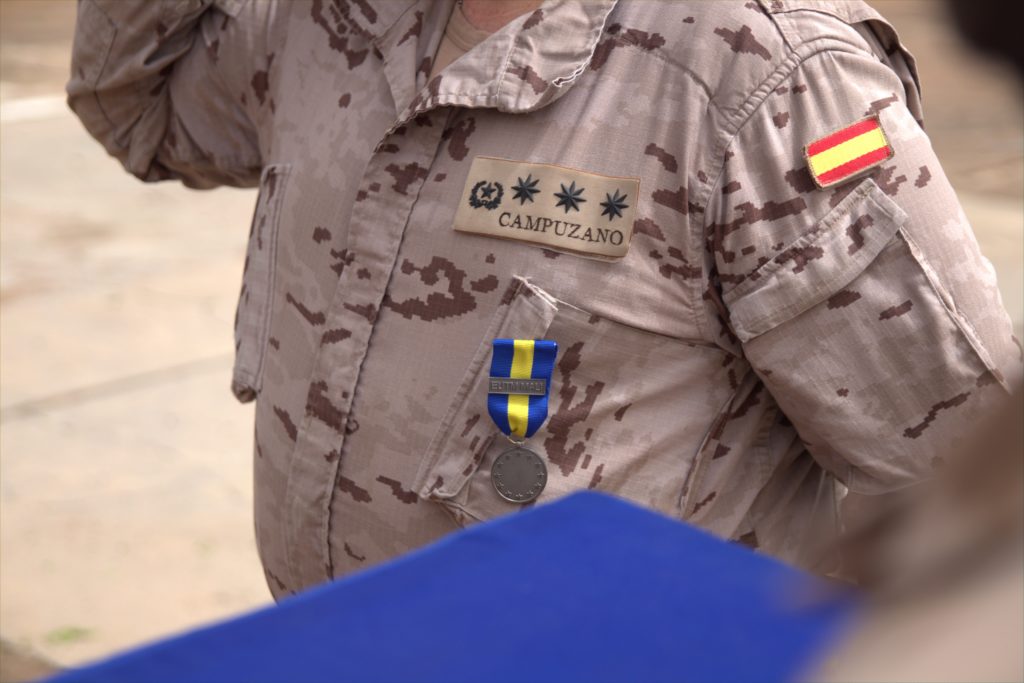 During his speech, Colonel Jesus Campuzano Santa Teresa mentioned two complementary approaches performed throughout his command to support Malian partners: On one side EUTM Mali have continued training the trainers of the Malian Armed Forces and also with the specialised courses to build up their autonomous capability for training. On the other side, EUTM Mali implemented, in real life, the Pre-Deployment Training concept to contribute to the Malian determination to deploy their units in the best possible conditions to the operation area.