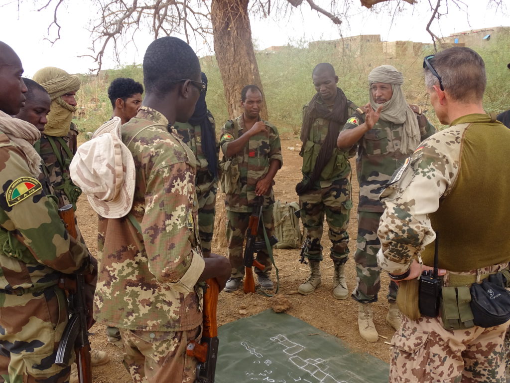 L’équipe de formation déployée à GAO est composée de formateurs lettons, français, autrichiens, allemands, irlandais et lituaniens. Des camarades espagnols fournissent un élément de sécurité. Cette sécurité permet à l’équipe de formation de se concentrer sur sa tâche, tandis qu’un ancien sergent des forces britanniques et un médecin ukrainien assurent la couverture médicale, c’est un mélange de personnalités et de cultures qui fonctionne tant bien que mal.