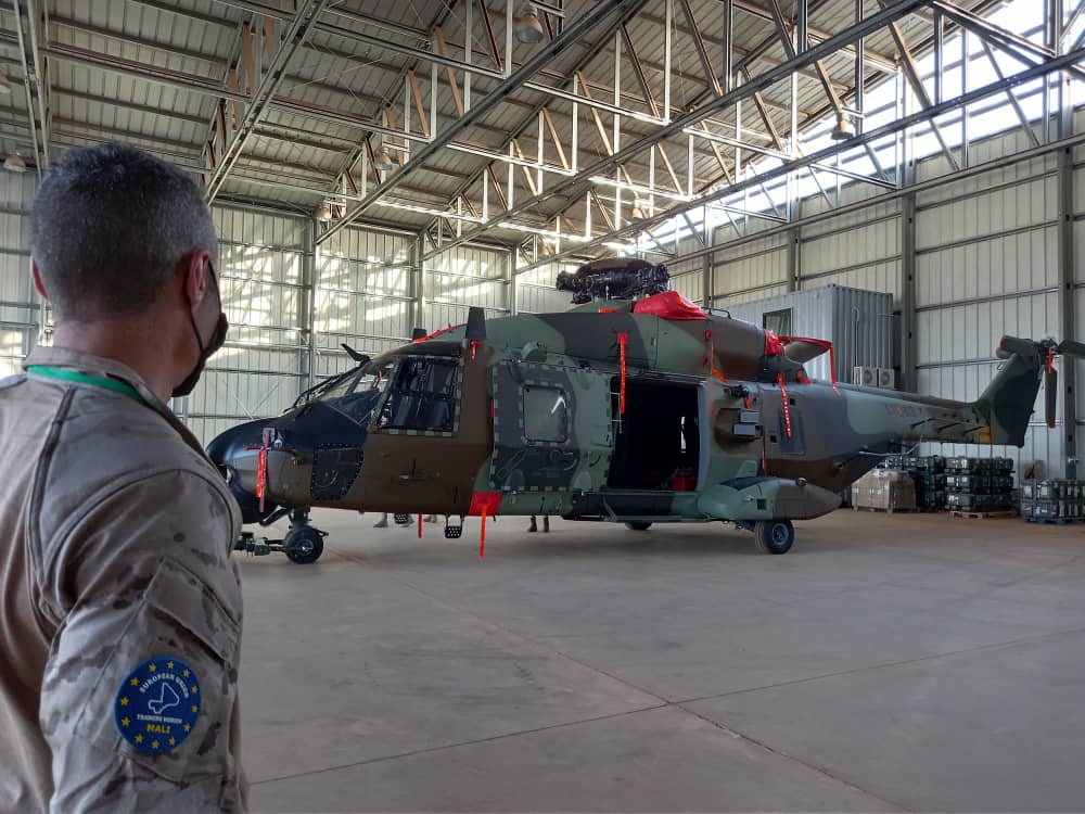 Bamako, aéroport international Modibo Keita, 26 juin 2021 – Le général de brigade Fernando Luis GRACIA Herreiz, commandant de la force de la Mission de formation de l’Union européenne (EUTM) au Mali, a assisté à l’aéroport de Bamako à l’arrivée du premier hélicoptère NH90 que l’armée espagnole a déployé au Mali dans le cadre de l’EUTM. Deux autres hélicoptères seront bientôt réceptionnés.