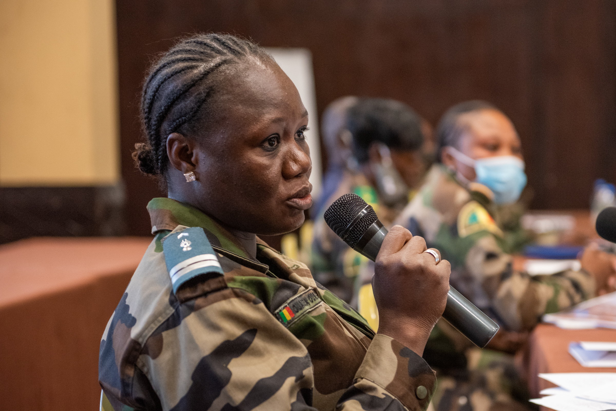 La table ronde a été riche en partage d’expériences, notamment sur l’employabilité des femmes et sur la question comment marier la vie professionnelle et la vie conjugale, tout en relevant le défi. Plusieurs officiers ont contribué à la discussion sur l’engagement des femmes dans les forces armées et sur le rôle des points focaux par leur témoignage personnel. Les participants ont partagé leur expérience dans une atmosphère très ouverte et agréable. Le colonel Zaleha Abdoulaye, point focal genre du MDAC, a présenté le plan d’action national malien en terme de la mise en œuvre de la résolution 1325 du Conseil de sécurité des Nations unies pour 2019-2024 et son plan d’action sectoriel au niveau du MDAC. Ensuite, les participants ont été divisés en quatre groupes pour discuter de l’avancement de la mise en œuvre au sein de leurs structures respectives et pour formuler des recommandations. Enfin, l’on a pu aborder les termes de référence par lesquels les réunions régulières de ce groupe de travail ont été prévues. Le but en est de s’échanger sur les processus dans lesquels il sera nécessaire de s’inscrire ainsi que de prévoir ensemble des actions cohérentes et efficaces qui permettront d’atteindre les résultats fixés.